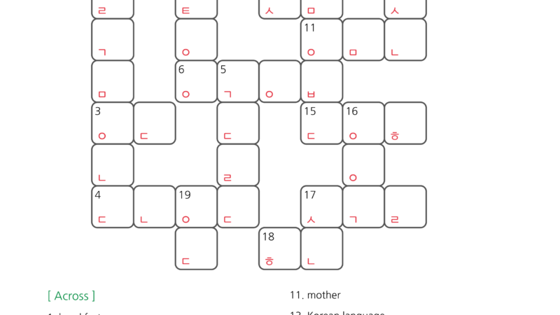 Korean Vocabulary Crossword Puzzle for Beginners (TOPIK I) – 10 Sets PDF